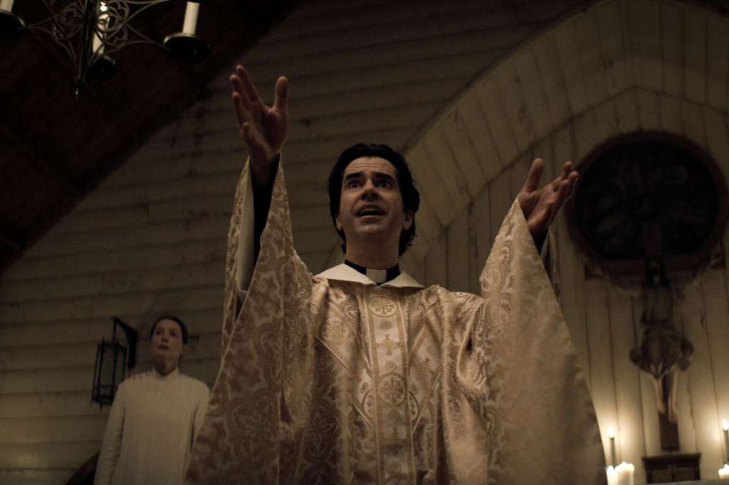We see this battle of wills vs. wants in what is the most pivotal turning point of Midnight Mass thus far. After Leeza stands up to drunk Joe Collie (Robert Longstreet), the newly minted Alcoholics Anonymous member stops by the home of Father Paul/Monsignor Pruitt (Hamish Linklater). Through a series of misfortunate events, Collie ends up bleeding out on the floor. Father Paul kneels down next to the hurt man, and in a haunting visual, the priestly man veers past this injured sheep and begins slurping the blood. Major credit to Robert Longstreet for acting through his seizure and still showing betrayal and shock in his eyes.