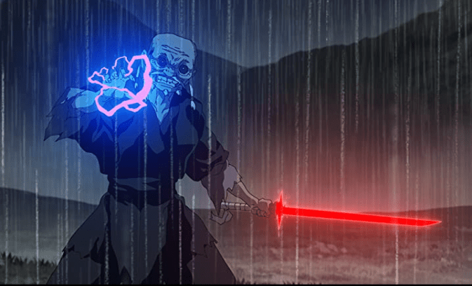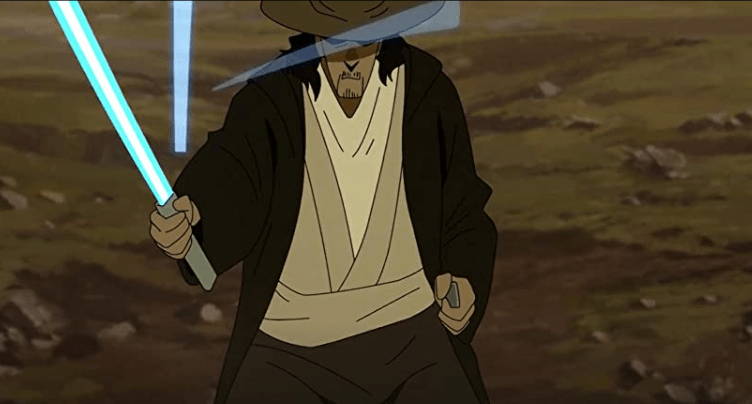 I know it is anime, and I know that it is Star Wars…but I can not abide by these Jedi or Sith Lords being in space and fighting and not dying because you know, the lack of air. It was one of my, if not my least favorite parts of The Last Jedi (2017) when Leia was just like WAHOOO, I got blown up but nahhh, I am all good. This same issue happens with The Twins.