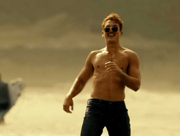 Also, it can’t be overstated how attractive he is in the movie. The GIF has gone around the world of him on the beach. And then he posts videos of him with The Boys star Chase Crawford on vacation.
