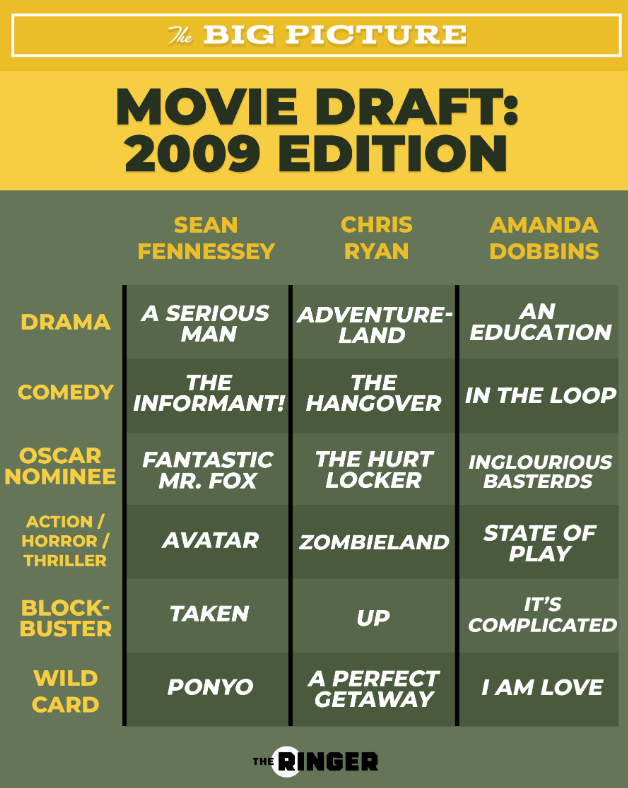 Looking at this reflection of “The Big Picture” 2009 Movie Draft, I have 83 movies that were released that year. It is a little bit below the median line that I set come the turn of the decade, but I still have some movies to look at and choose from.
