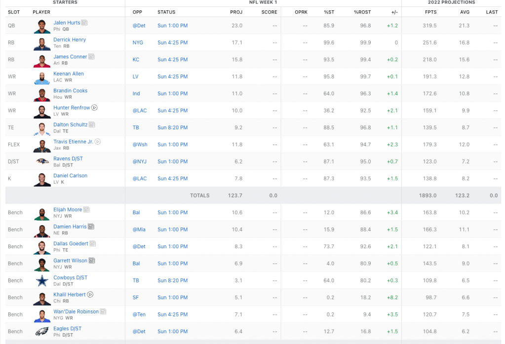 The way Steve’s draft turned out made me jealous. I wanted Jalen Hurts as my quarterback. I wanted to have the boring James Conner on my roster and I really wanted Travis Etienne Jr on my roster.