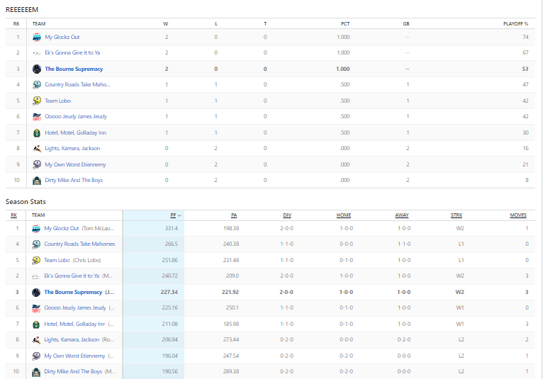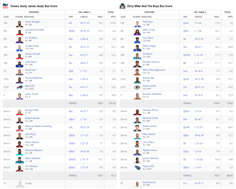 Standings Notable Week 2 Nuggets Points Scored Compared To Projected Through Week 2 Week 2 Matchup Recap Ooooo Jeudy James Jeudy (116.16) defeats Dirty Mike And The Boys (110.4) A […]