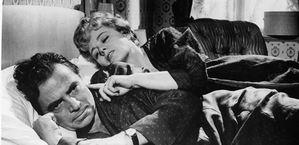 Professor Humbret Humbert (James Mason) working on listening to Charlotte Haze (Shelley Winters)