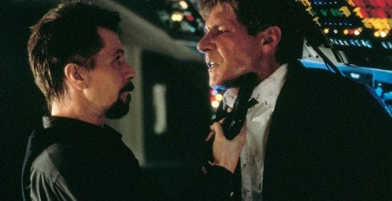 Here is a question I posed while watching Air Force One. I think it has a right answer, but I think it is worth talking through. Is Gary Oldman better in Air Force One, or Léon: The Professional (1994)? The answer is Léon: The Professional, but this man did both of these psychotic roles within three years of each other. Oh, and the same year as Air Force One he did The Fifth Element (1997) as well. This man thrived in absolutely zany character parts in the mid 1990s and I am all about it.
