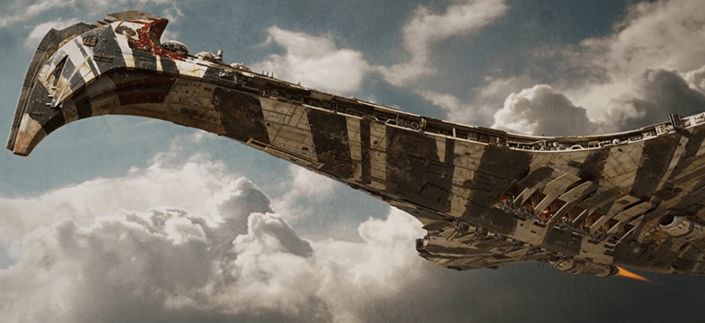 Din Djarin begins distracting the big pirate ship and soon he has all of the attention of Vane and Gordian Shard. For a time it appears like the Pirates are holding their own okay, but that is short lived. Did we ever really thing that they stood a chance?