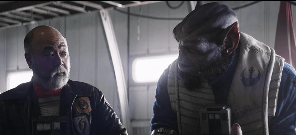 You know what I did not have on my bingo card? Teva arriving at the Mandalorian outpost. That is something I did not think possible or likely at all. We know that the Mandalorians are still there because Bo-Katan’s ship is still there. Teva arrives to a naked beach, but immediately Paz tells Teva whats up. Things are going to get a little hostile…until Mando steps in and says that Teva is a friend.