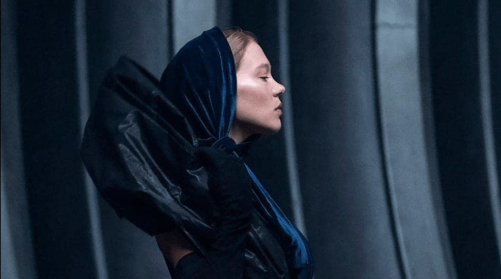 Oh, and what a look we have here. Austin Butler, coming in flaming grey with a bald head and a chiseled chin as Feyd-Rautha Harkonnen. For those that do not know, Feyd-Rautha is the younger nephew of the Baron, and he is seen as the heir to this thrown. Unlike his brother, who is a somewhat simple thinking brute, Feyd is a cunning, slippery warrior. The interesting thing tid-bit is that Feyd was being groomed for big things by the Bene Gesserit. You remember the hooded clothing in black witches from the first movie?