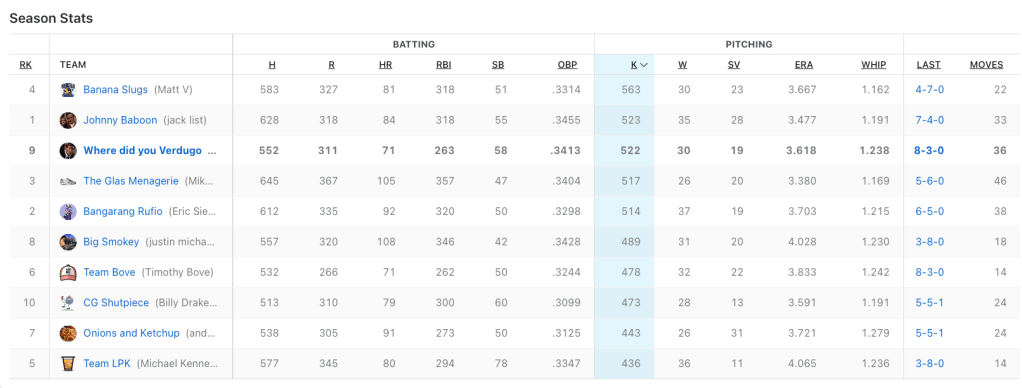 Just a heads up to anyone reading this, there’s going to be less words in this fantasy baseball recap because I’m doing it speech to text and trying to get Google to understand professional baseball players names without me having to go in and retype them all in is going to be a big pain in the ass. So for my sanity, we are going to try and keep this as simple as possible.