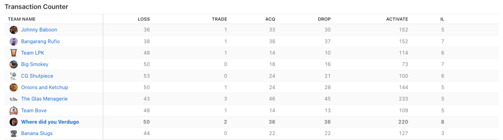 So lots of trades happening all around. I also found this thing called the Transaction Center in the league which I had never seen before, just a bit of a snapshot of the moves everyone’s made this year.