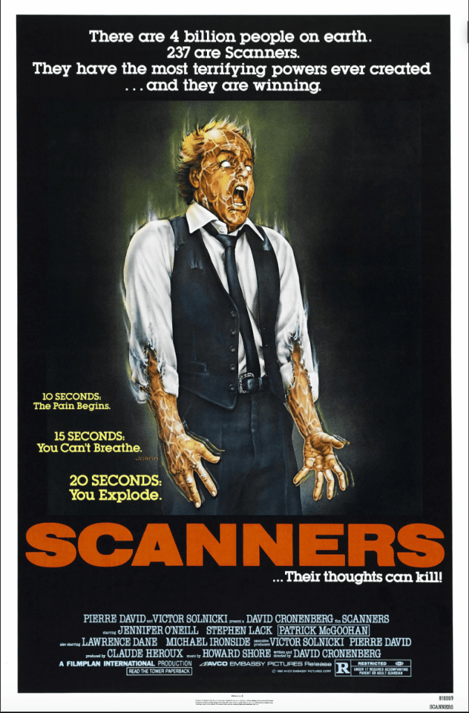 “A scientist trains a man with an advanced telepathic ability called “scanning” to stop a dangerous Scanner with extraordinary psychic powers from waging war against non scanners.”