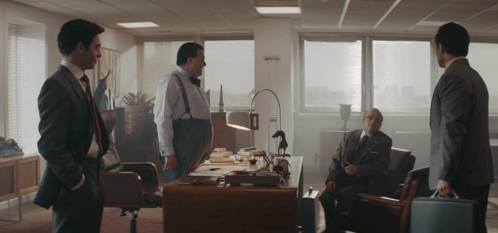 Edgerton just does his charming thing in Tetris. He has the effervescent energy of I Can Do This surging through the character of Henk Rogers. The same saucy smoothness that we saw in the admittedly meh Robin Hood (2018) is amped up with dad energy. The mustache, heavy coats, and overly messed up yet seemingly coiffed hair, all work well to create the presence of a man who won’t leave any scenario till he gets the answer he wants.