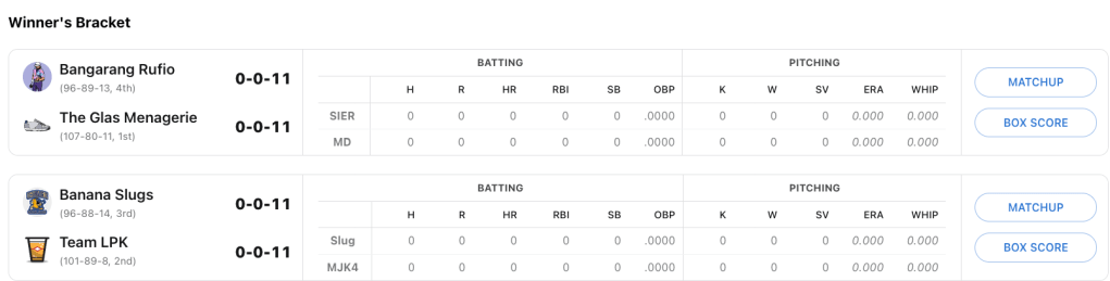Second of all, this is the final big-time recap I am going to be doing this season. This is where the stats are counted and marks are made. Understandably those in the consolation bracket will lose interest and lineups will be forgotten to be filled out.