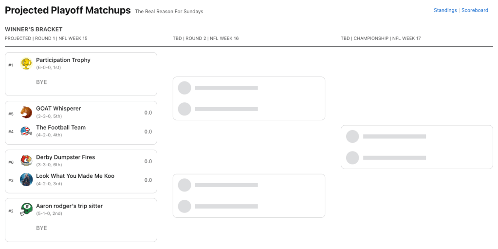 I am in a bad mood, so I donโt have much to say about this league. The man is beating me down. But I am not as down bad as Huntley is. Brother, this season has been a impolite slap in face to your drafting and managerial prowess.