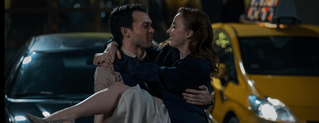Emily (Phoebe Dynevor) and Luke (Alden Ehrenreich) are a young, frisky recently-engaged couple deep in the throes of successful and personal bliss. The quirk in their relationship is that they both work for the same high-stress financial firm. By nature of the work environment and the self-preservation necessary to survive as employees, Emily and Luke must hide their relationship.