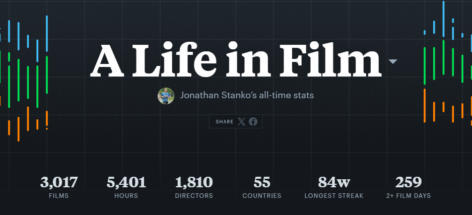 These are the highlights from my Letterboxd.com All-Time Stats. Not just 2023, but all of time. All encompassing. I have my google sheet which has been my guiding light since I started obsessively tracking things, and Letterboxd.com has become my second home for chronicling the insane amount of movies I watch.