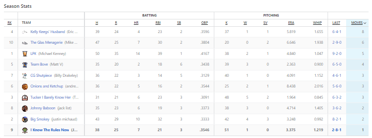 Unfortunately I do not have the time to do deeper dives into my own matchups. And no, it is not because I am bad at fantasy baseball. I am putting more effort into the group stuff that hopefully everyone can get something from each week.