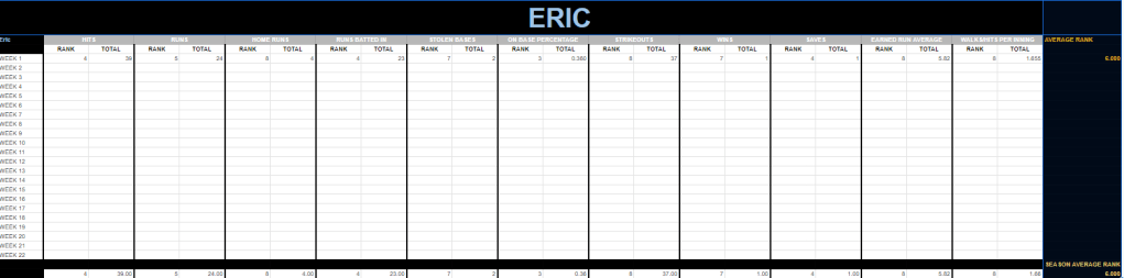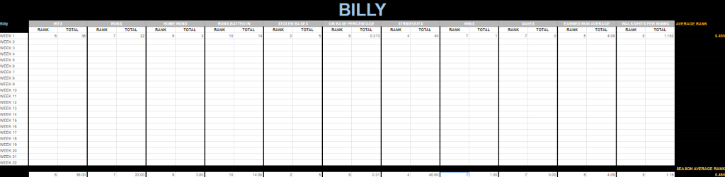 Billy didn’t have the best week, but he has to be grateful for Eric having an dismal pitching week.