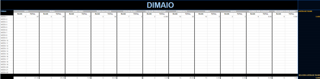DiMaio had a team ERA of 6.646 and a team WHIP of 1.938. Not ideal numbers.
