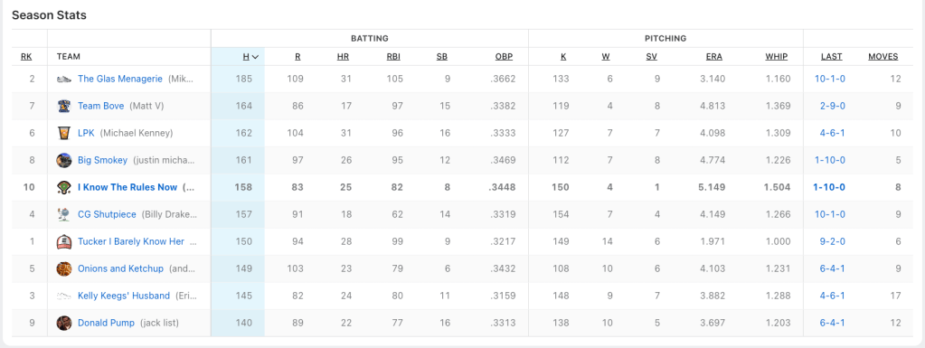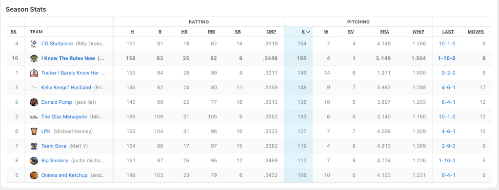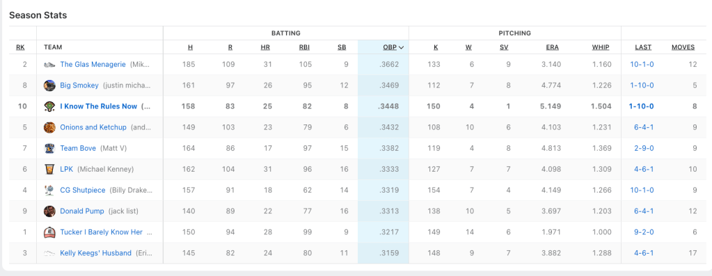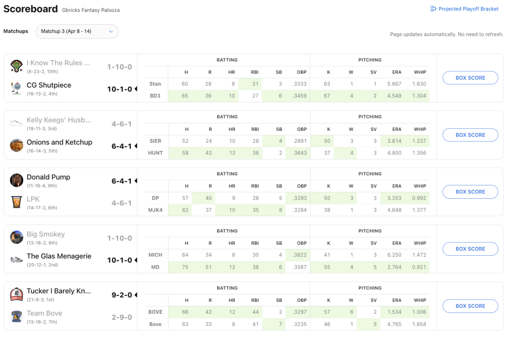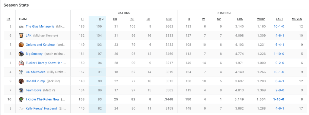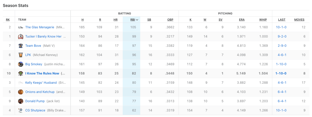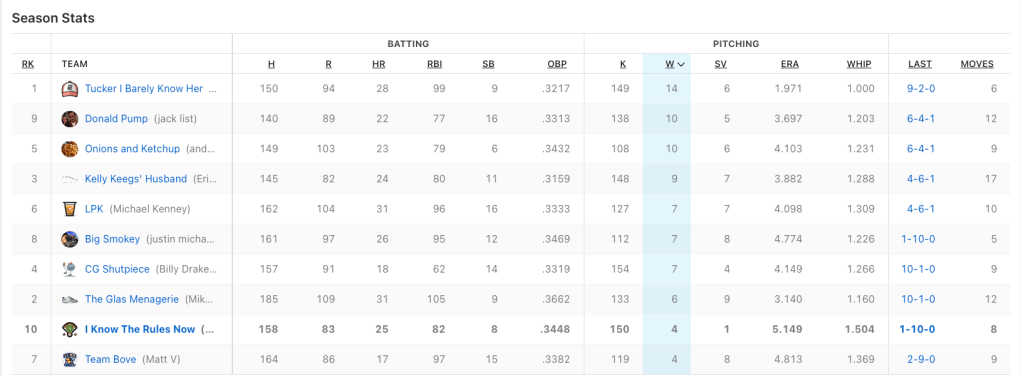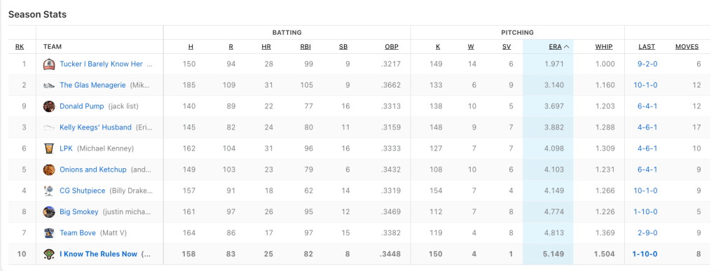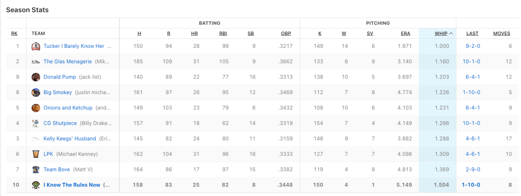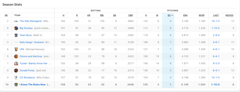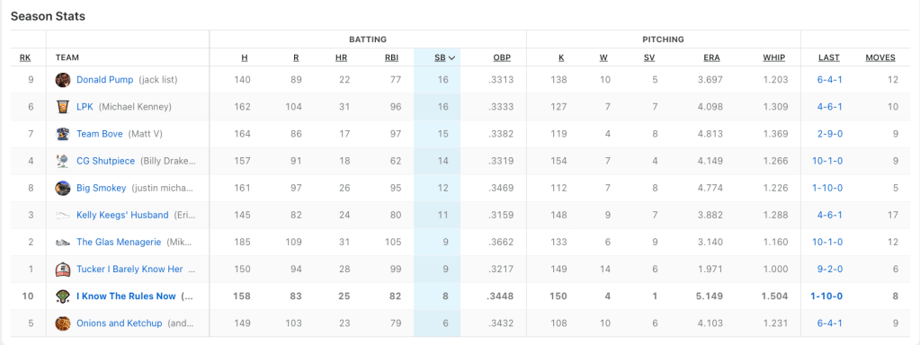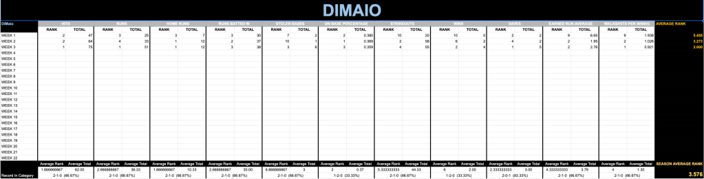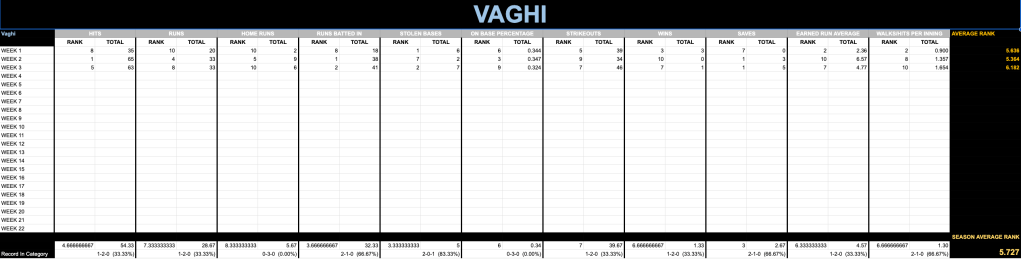 The only categories Vaghi won were Stolen Bases and Saves. The all-or-nothing categories went the loser’s way this time around.