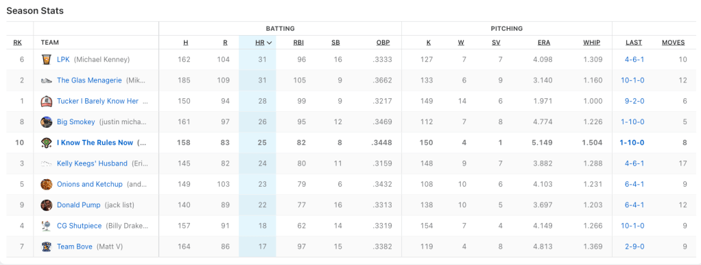 Kenney’s weirdest quirk is that his team hit 10 home runs…and they all came from 10 different people.