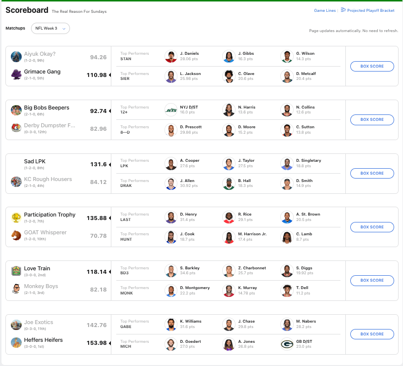 Real Reason For Sundays Fantasy Football Week 3 Recap