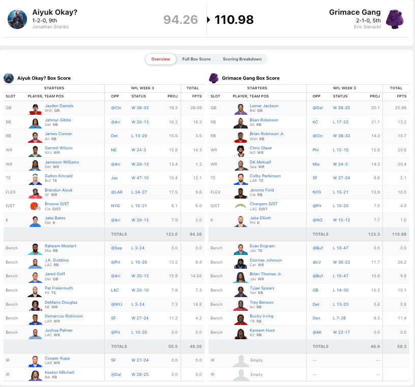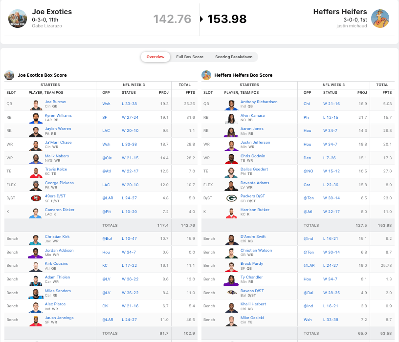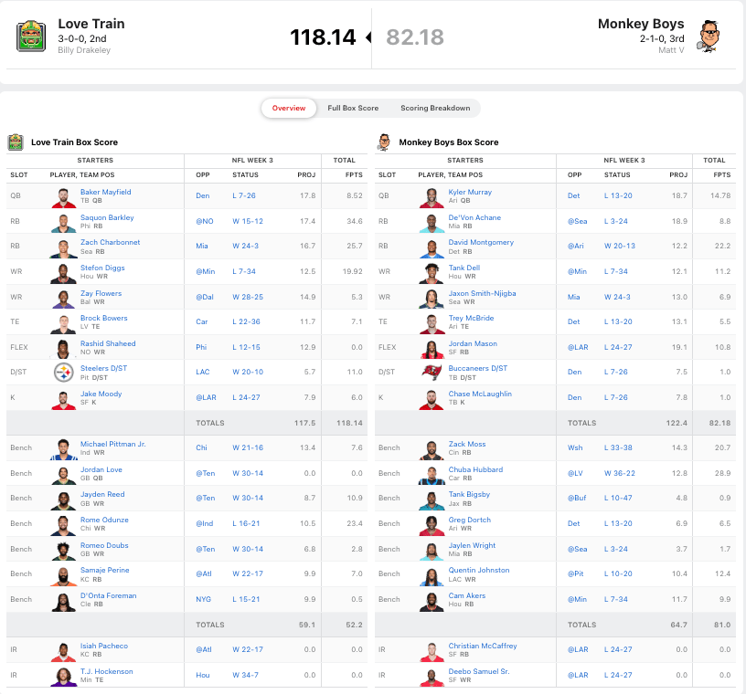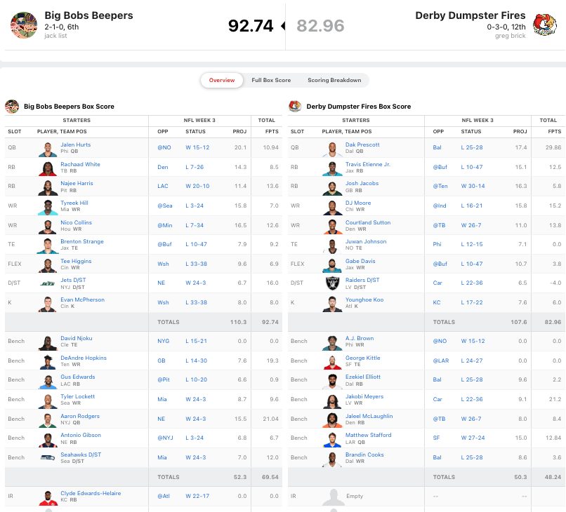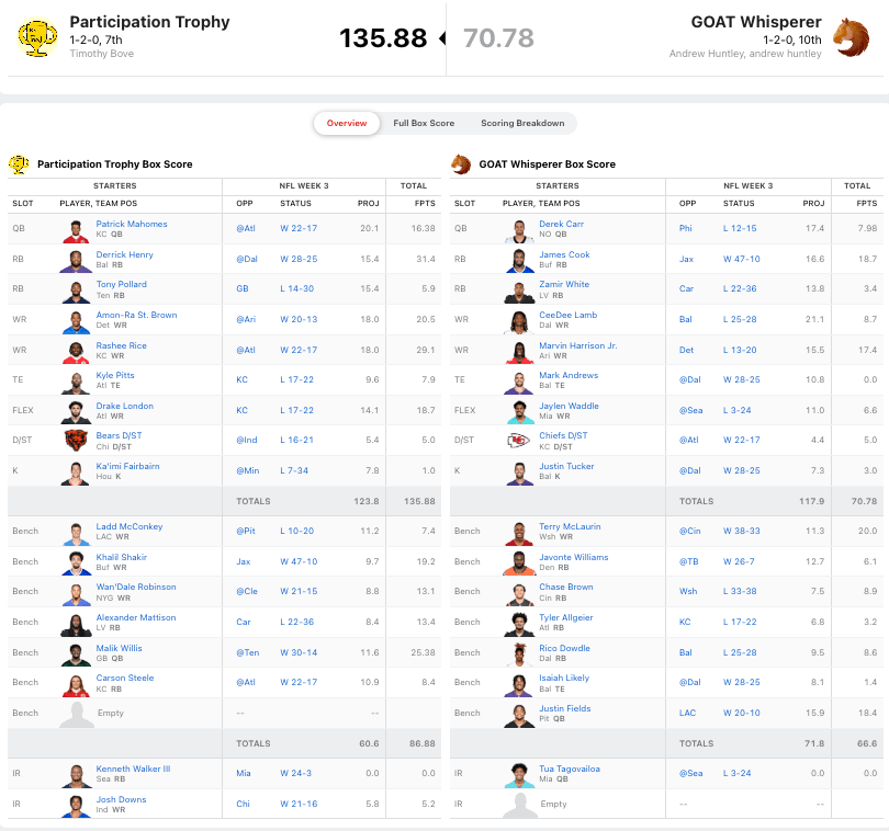 Real Reason For Sundays Fantasy Football Week 3 Recap